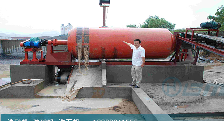 滚筒洗矿机工作原理环球锥形滚筒洗矿机主机被四个拖轮支撑,电机带动减速机,大小齿轮带动清洗筒体低速旋转。含有泥团的矿物和砂石骨料自进料口给入,进入旋转的滚筒内,被清洗滚筒内安装有一定角度的耐磨衬板不断带起抛落,自进料端到出料端移动过程中多次循环,并被顺向或逆向的冲洗水冲涮洗涤,清洗干净的骨料经过卸料端筒筛筛分脱水后排出,含有污泥的废水则通过出料或给料端的带孔挡板流出。