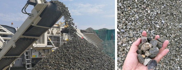 NFC1000RS,所生产的骨料成品中0-6mm成品料作为机制砂,6-31.5mm成品料作为建筑粗骨料。