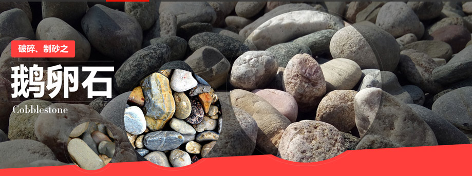 由于河卵石具有硬度高、含硅量高等特性,所以河卵石破碎多采用颚式破碎机、圆锥破碎机和冲击式制砂机。